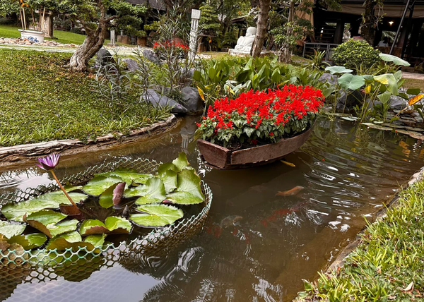 Bước chân vào cổng, du khách như lạc vào một khu vườn cổ kính, được bao bọc bởi sắc xanh của cây lá, tiếng nước róc rách của hồ sen, và hương hoa dịu nhẹ trong gió. Mọi giác quan như được đánh thức, để mỗi người tìm thấy một khoảng trời bình yên riêng cho mình.